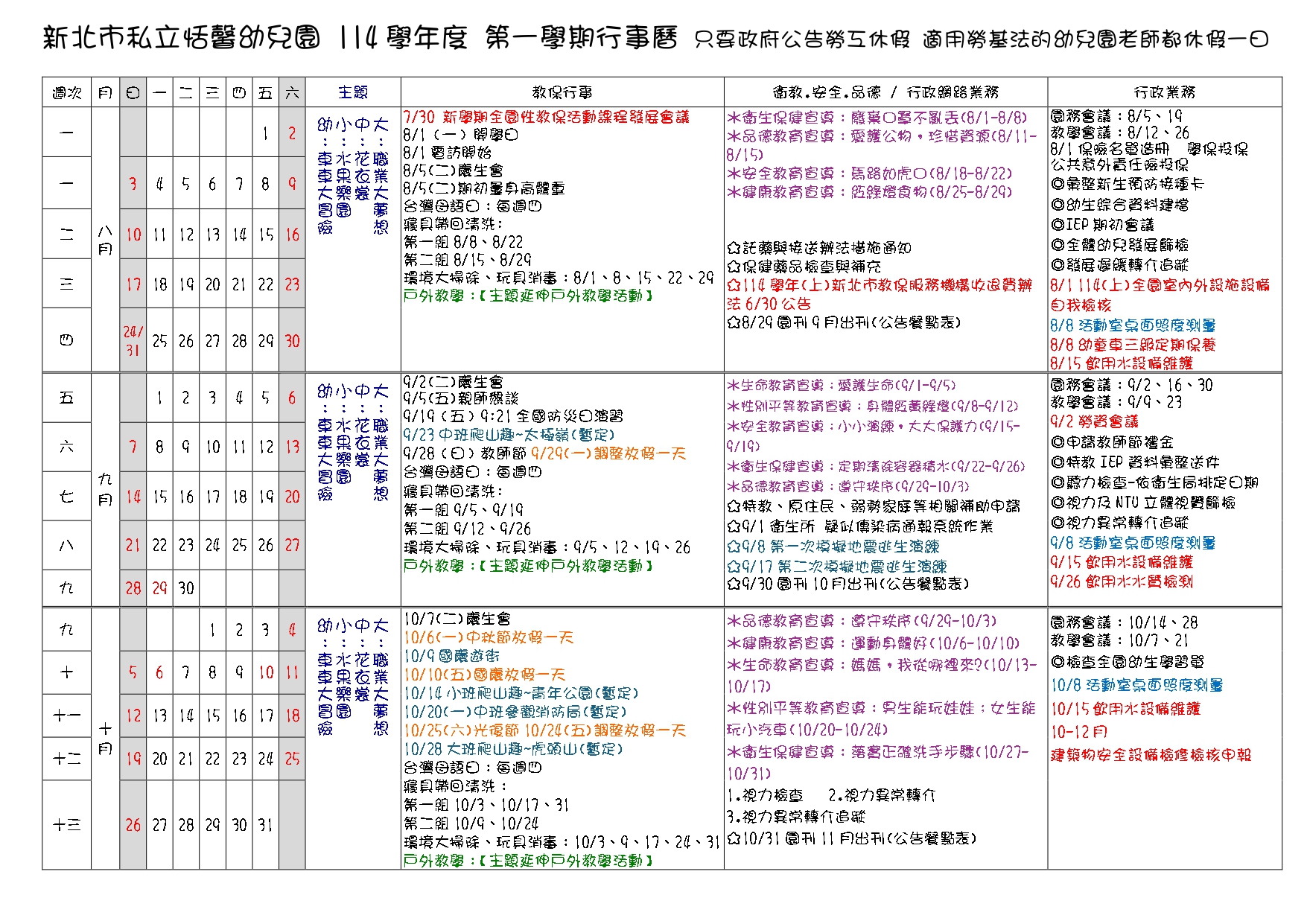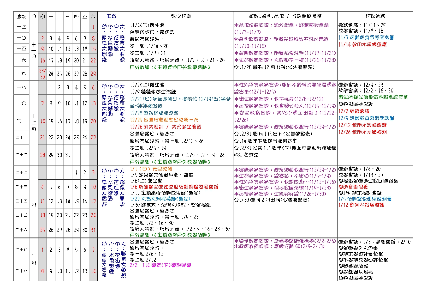 恬馨幼兒園-114學年度行事曆