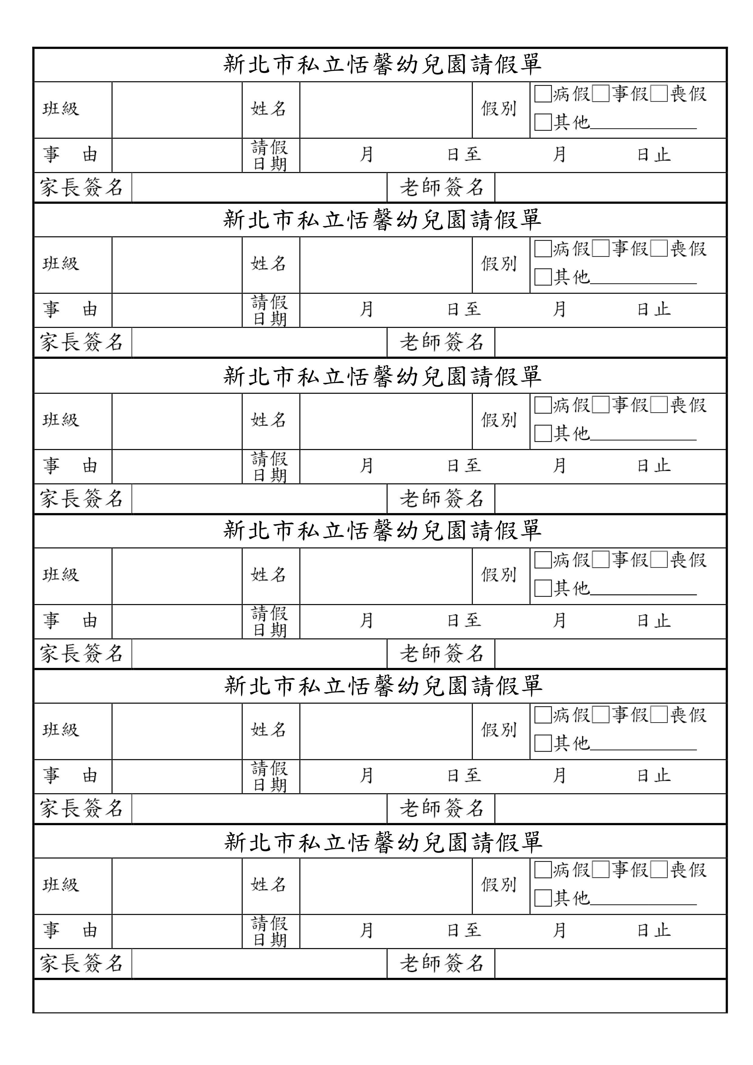 恬馨幼兒園-2026新版請假單(請列印B5大小)